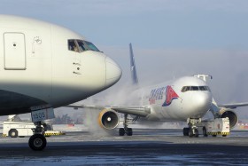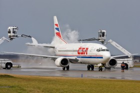 Že by už začala skutečná zima i na Praze Ruzyni? Odstraňování námrazy z nosných ploch.