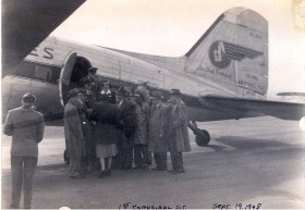 19.09.1948 - záběr z prvního obchodní letu společnosti Robinson Airlines. Vyfotografovaný letoun je nyní vystaven před sídlem ČSA na letišti Praha Ruzyně ve starých barvách ČSA jako OK-XDM. Indián na snímku je indiánský náčelník kmenů Mohawků a Onondagů, který se jmenoval Jesse Lyons. Jeho přítomnost u prvního obchodního letu byla v souvislosti s použitím loga obrázku indiánské hlavy na směrovce