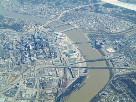 Pohled na centrum města Cincinnati v Ohiu, USA
