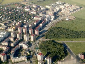 Sídliště Barrandov během přiblížení k dráze 31 letiště Ruzyně