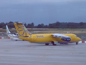 Buzz byl již převzat společností Ryanair, přesto jsou některá jeho letadla ještě v původních barvách i s nápisem