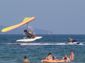 Tak takéto čosi bolo bežné aj v Primorsku, akurát rogalo nemalo plaváky, ale štartovalo z cesty popri pláži. S letom v jednom metre nad vodou a s ostrými zátačkami v malej výške nemal vôbec problém... :)