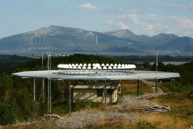 Radiomaják typu VOR/DME Vigra (Ålesund), v pozadí stejnojmenné letiště.