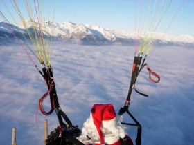 05.12. Svatý Mikuláš při dnešním obtížném seskoku před průletem nízkou oblačností. V těchto chvílích by měl navštěvovat první hodná dítka.