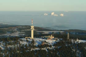 Pohled z OK-XUU 17 na vysílač Klínovec a vánoční inverzi nad LKKV.
