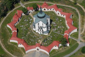 Poutní kostel sv. Jana Nepomuckého na Zelené hoře (UNESCO) z paluby letounu Tecnam
