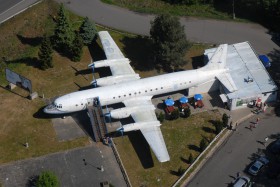 Restaurace vytvořená z Il-18D poblíž Mladé Boleslavi z ptačí perspektivy.