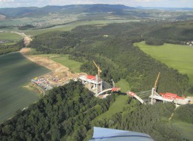 Rozestavěný most na D8 u Velemína přes Oparenské údolí v Českém středohoří