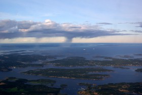 Pohled na norské pobřeží během přiblížení na letiště Oslo - Sandefjord Torp.
