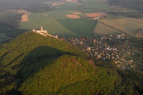 Takhle z výšky to vypadá jako takový trochu větší pahorek v krajině, ale ve skutečnosti je to kopec jak hovado, obzvlášť když se člověk šplhá z vesnice nahoru na hrad :)