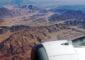 Pohled na egyptské pohoří táhnoucí se mezi oblastí Nilu a Rudého moře během letu mezi Hurghadou a Káhirou. Fotografie pořízena 31.8.2010 během letu OK6099 Hurghada-Praha na palubě A321 ČSA OK-CEC