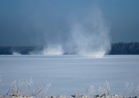 Vzdušné víry no poli u kruháku po průletu B737 (G-CELX), vpravo nahoře A321 (VP-BUM)...