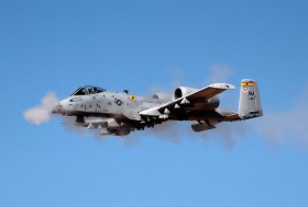 Fairchild Republic A-10 Thunderbolt II při ostré střelbě z 30 mm GAU-8/A Avenger Gatling-type na Barry M. Goldwater Air Force Range
