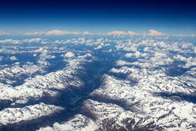 Rakouské alpy při letu Marseille - Praha, FL360.