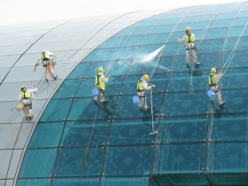 super, spidermani...to mají na botách nějaké přísavky?:-))jinak by to na skle klouzalo, a ještě jim stříkají pod nohy