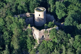 Méně známá zřícenina hradu Valdek, která se nachází ve VVP Jince na okraji Brdských lesů. Foceno z Cessny C-152 OK-MDK.