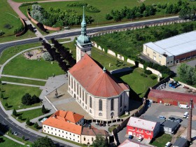 Kostel Nanebevzetí Panny Marie v Mostě, který byl přesunut v roce 1975 z důvodu rozšiření povrchové těžby uhlí.