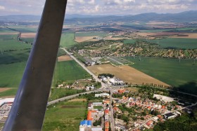 Pohľad na: Levice, Krížny Vrch, Podlužany, Hronské Kosihy, Čajkov, Nová Dedina, Rybník, Tlmače. Fotené nad Levicami z UL FantasyAir Cora, OM-M999
