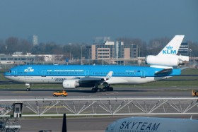 11.11. Na letišti v Amsterdamu dnes probíhá rozloučení s typem MD-11 v komerčňí osobní dopravě. KLM, jako poslední provozovatel na světě, pořádá 3 vyhlídkové hodinové lety - KL9895, KL9897 a KL9899. Létá letoun registrace PH-KCD (na snímku ve 13:10 pojíždění na start druhého letu), druhý reg. PH-KCB je společně s DC-3 reg. PH-PBA účastníkům připraven na ploše k fotografování.