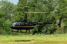Vzlet vrtulníku Robinson R44 od UNI HOBBY v Pardubicích v rámci akce HELI CZECH, s.r.o. - "Vrtulníkem na Aviatickou pouť v Pardubicích".
