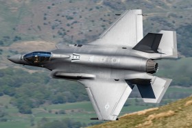 F-35 patřící 493 Fighter Squadron Grim Reapers se základnou v Lakenheath. Bwlch, Wales LFA7