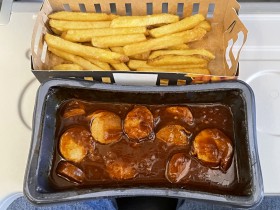 Oběd (currywurst) na letu Larnaca - Praha
