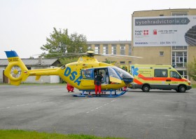 Poslední stroj společnosti, létající ještě ve starých "amerických" barvách, čeká na návrat lékaře, který doprovázel pacienta do jedné z pražských nemocnic. Pak odlétá do Brna.