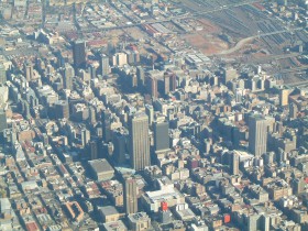 Pohled na centrum města Johannesburg z letadla B767-300 Nationwide