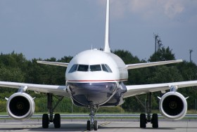 Airbus A320 na finálním přiblížení před přistáním ve Vídni