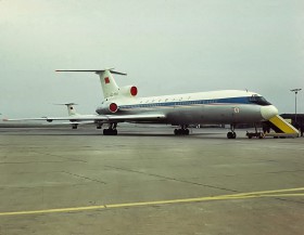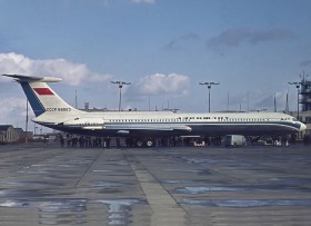 • Provoz na starém letišti - přistání letadla Tu-104 na RWY 04 s brzdícími padáky (v pozadí), cateringový vozík, na odstavné dráze je Dakota, směrovka patří letadlu IL-12, v pravé části pak čs. vojenská Avia-14. Na příďi je k vidění DC-6 KLM, ze které ručně vykládají poštu