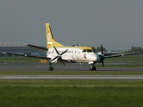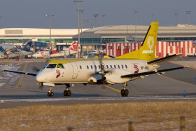 29.01. Dalším letadlem na lince OLT z Gdaňsku je tento Saab 340A. Vyroben byl v únoru 1989 a létal u Brit Air (F-GHMK), Air Botnia (OH-SAF) a Lagunair (EC-IRR), jehož částečné barvy dosud nosí.