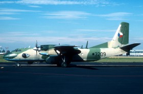 An-26Z-1, 3209, český (dříve československý) AWACS se speciální zástavbou a anténovým systémem. Původně patřil do stavu 1.smdlp v Mošnově, v roce 1992 dislokován krátkou dobu v Pardubicích, kde po přesunu dopravní letky do Kbel již zůstal. Snímek (sken z negativu) byl pořízen 15.9.1999 při cvičném přistání v Náměšti. Letoun v tu dobu nesl již nové kamuflážní schéma, ale ještě barevné výsostné znaky.