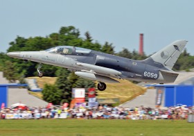 Pondělní ranní odlet z 22. ročníku CIAF. Letoun L159A registrace 6059 a L159T1 registrace 6047 byly součástí statické expozice Vzdušných sil Armády České republiky.