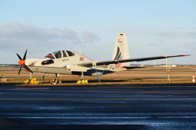 Od neděle v Praze pobývá velice zajímavý stroj Grob G-520T Egrett II. Původně byl určen pro výškový průzkum pro Luftwaffe, ale ta nakonec objednávku na devět strojů zrušila. V současné době s používá k civilním monitorovacím letům. Je též držitelem výškového rekordu v hodnotě 53574 ft/16329m. Právě pojíždí na start k pět hodin dvacettři minut trvajícímu leu nad Praho a okolím v průměrné výšce 44000 feetů.