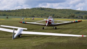 Pojíždějící vlečná se v okamžiku navijákového startu uklidila až ke kraji dráhy a tak vznikl tento snímek.Prcku uhni!