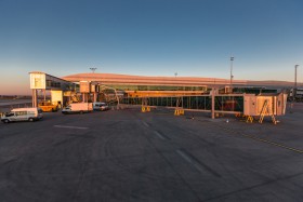 Preparing boarding bridges for lifting and fixing the gate. Stand 14 will have in a few days as the first in the Czech Republic 3 bridges. The new bridge will be used only for the upper deck A380 and the bridge will be able to rise to a height of 8 meters.