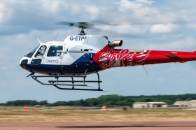 Helicopter dropping off oil rig workers in the Norwegian Sea.